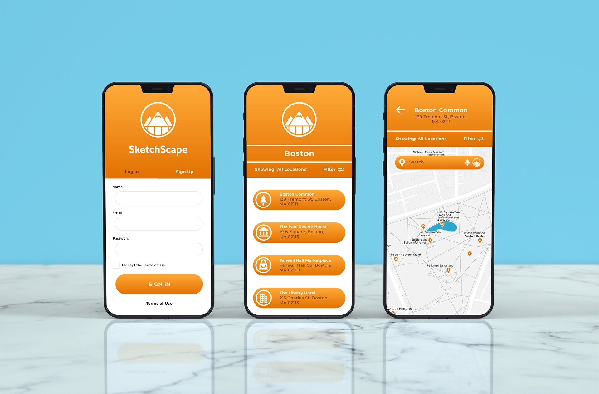 SketchScape is a conceptual app built in AdobeXD that locates areas of visual interest close to the user as artistic inspiration. It encourages the often secluded lifestyles artists lead to branch out and create in open spaces.